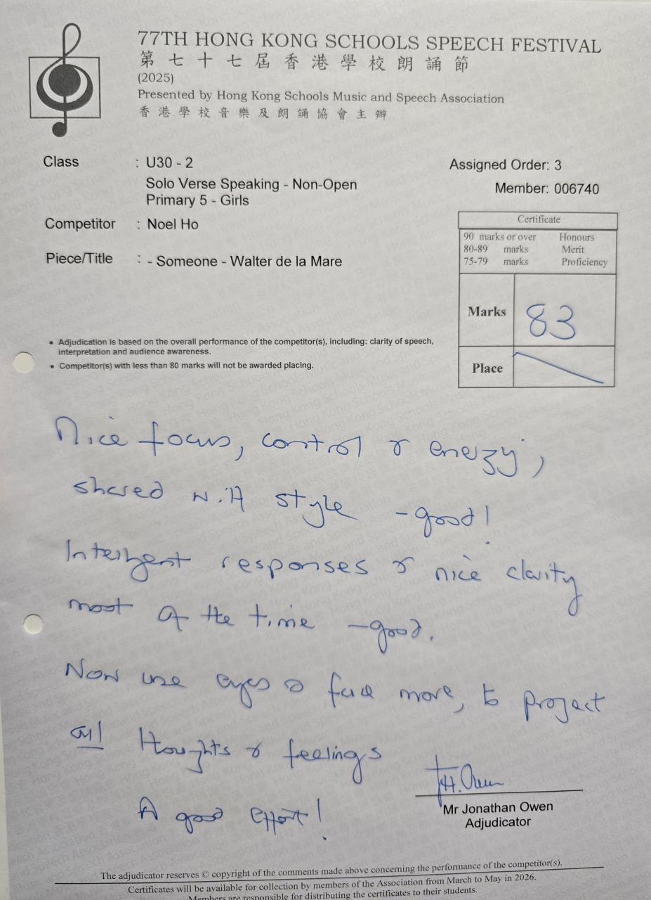 比賽主辦機構:香港學校音樂及朗誦協會