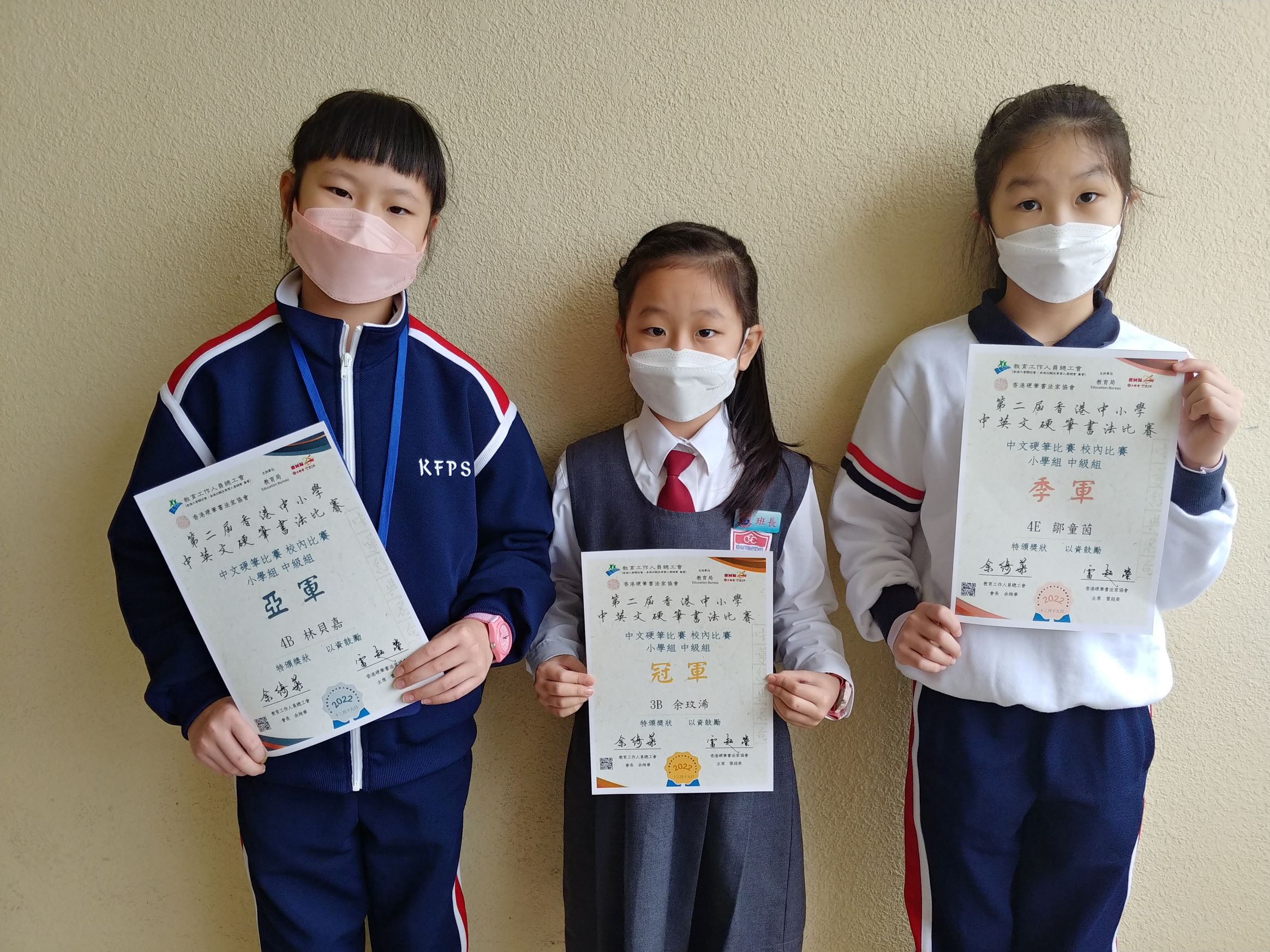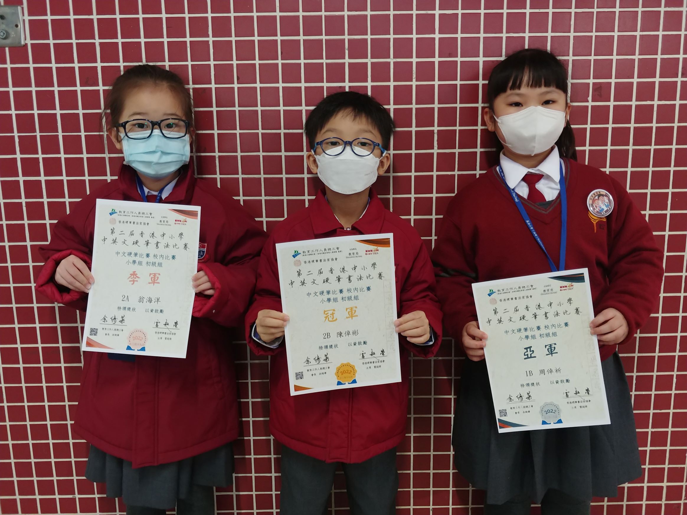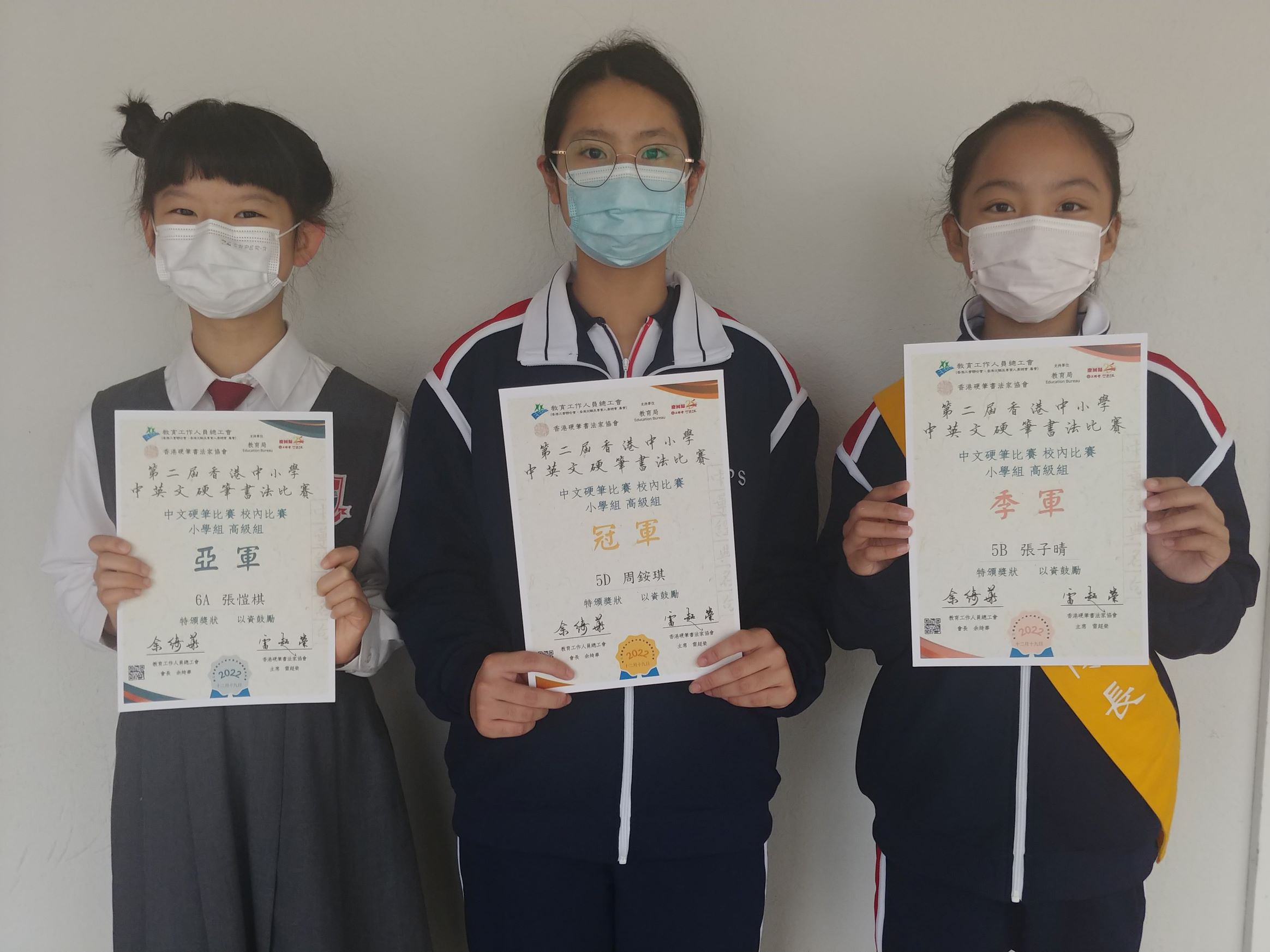硬筆書法比賽得獎學生