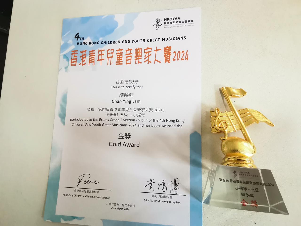 第四屆香港青年兒童音樂家大賽考級組五級-小提琴