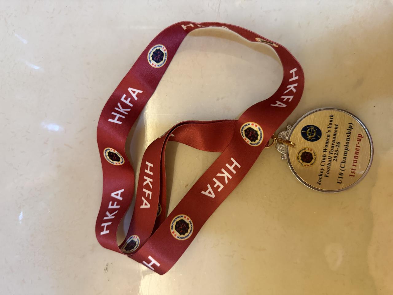 2025-11-24 班別:4D 姓名:張千穎比賽主辦機構:The Football Association Hong Kong, China比賽名稱:Jockey Club Women’s Youth Football Tournament 2025-26獲得獎項:U10 (Championship) 1st Runner-up 體育